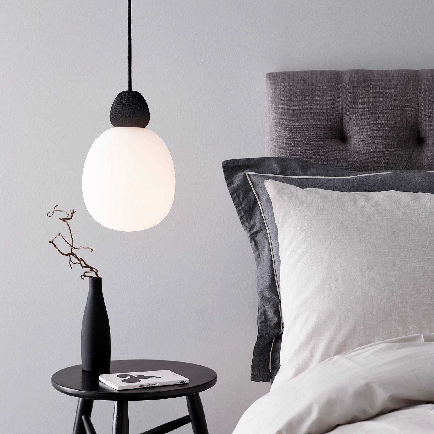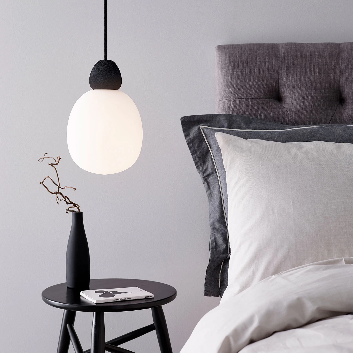 De hanglamp van Belid heeft een simpel ontwerp met zachte vormen en een lang koord. Een perfect detail voor elke kamer in huis.