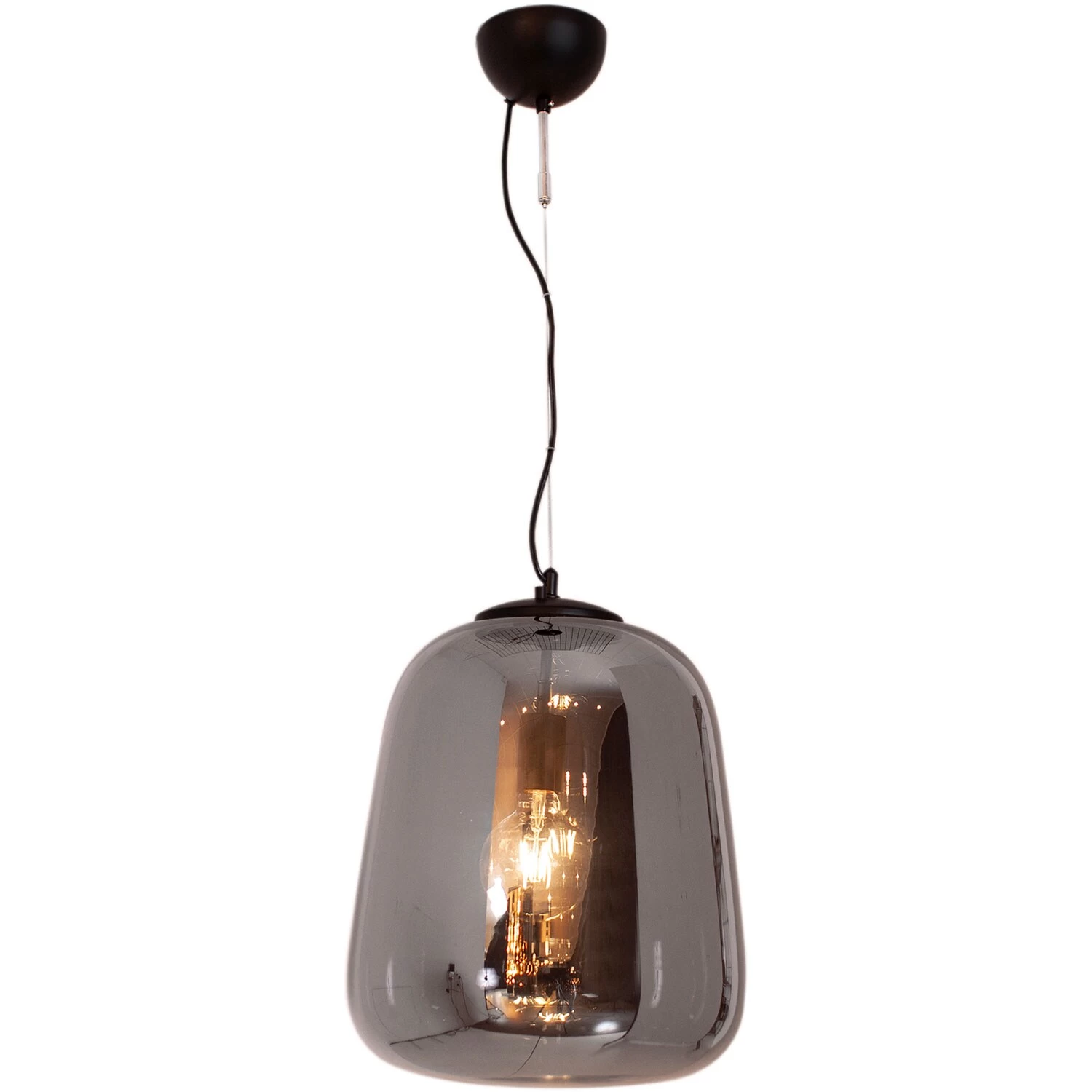 De plafondlamp van By Rydéns heeft een stijlvol ontwerp met een industriële uitstraling en een prachtig licht, perfect voor de woonkamer of slaapkamer. De lamp heeft een rookgrijze koepel van glas met een zachte vorm en details van metaal. Het heeft een zwart koord met verstelbare lengte en een suspensie met haak.