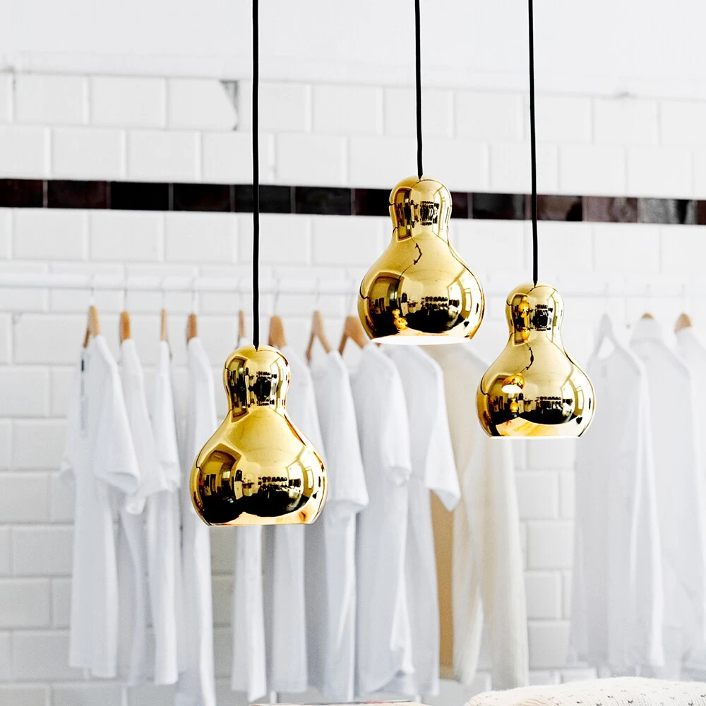 Calabash Pendant from Lightyears. Inspired by the classic gourd pump, the Calabash pendulum was created by the duo Boris Berlin and Poul Christiansen. In soft harmonic shapes and a gold finish it is irresistible to the conscious. The cable is black textile-clad, choose between three or six meters. Thanksgiving included.