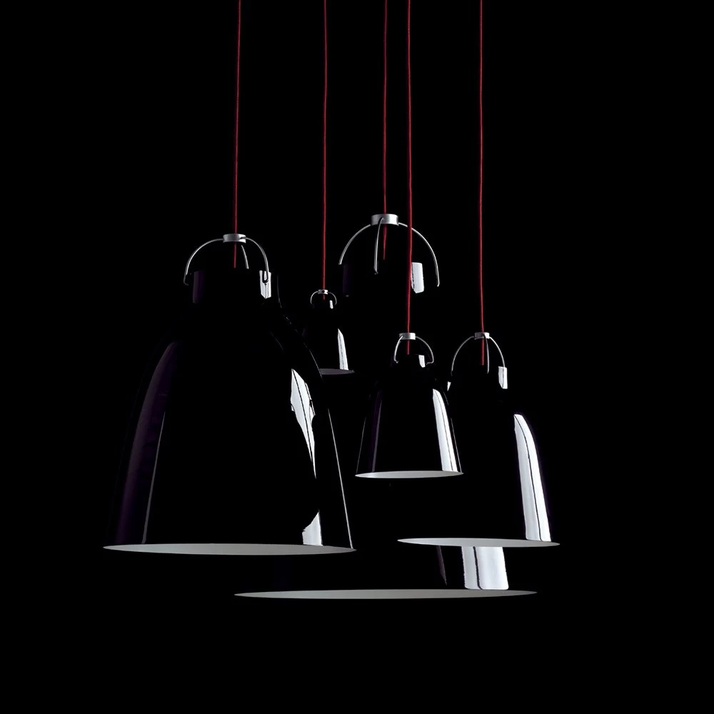 The lamp is made of steel covered with a smooth high-gloss paint. Caravaggio has an opening at the top of the lamp that illuminates both the textile cord and hanger. Caravaggio is characterized by direct glare-free light.