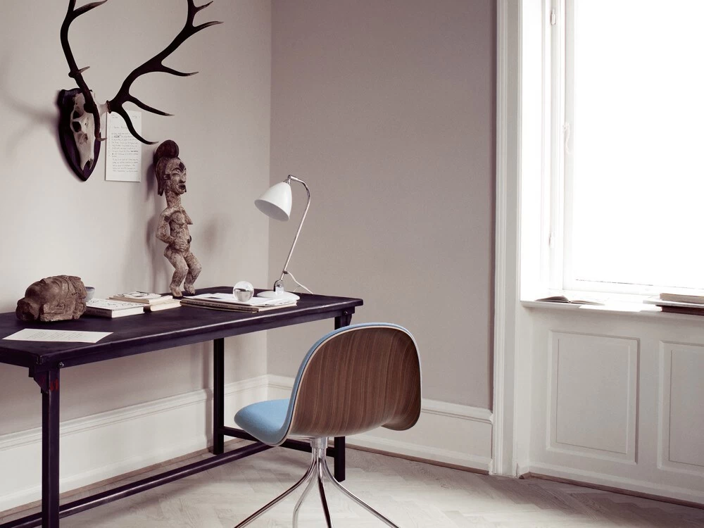 Bestlite BL2 table lamp from the Danish brand Gubi. Classic table lamp with a raw and exciting design. The Gubi lamp was designed in 1930 by the English designer Robert Dudley Best. During World War II, it became the status of a national icon when Winston Churchill had such a standing on his desk in the shelter under Whitehall. Today, more than 70 years after it first started producing, the Gubi lamp is a great design classic in Scandinavia, which with its beautiful and industrial design fits into all types of interiors and environments. The adjustable screen makes the BL2 a perfect reading lamp that fits the desktop perfectly. The Gubi lamp is available as a table lamp, floor lamp, wall lamp and pendant and is available in more colors and designs.