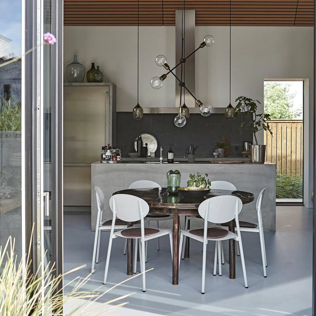 Molecular hanglamp van het Deense House Doctor bestaat uit vijf messing sokkels die zijn bevestigd aan zwartkleurige verstelbare stangen. Molecular is net zo decoratief wanneer het uit als aan is. Afhankelijk van de gebruikte lichtbronnen heeft de lamp een ander uiterlijk – combineer naar wens of gebruik hetzelfde voor een meer gelijkvormige uitstraling. De lamp is ook verkrijgbaar in een uitvoering met zeven lichtbronnen.