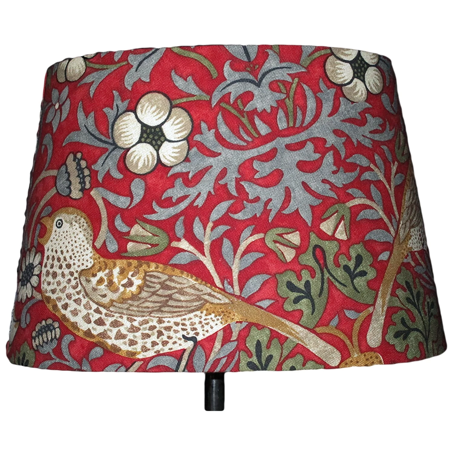The Strawberry Thief fabric was designed by William Morris in 1883. One of Morris’s most successful designs of all time. History says that Morris discovered birds that stole fruit from his kitchen garden at his countryside home in Oxfordshire. This fantastic pattern is thus inspired by the thrush that picked up strawberries from his flowering garden. The lamp shade has an oval shape.