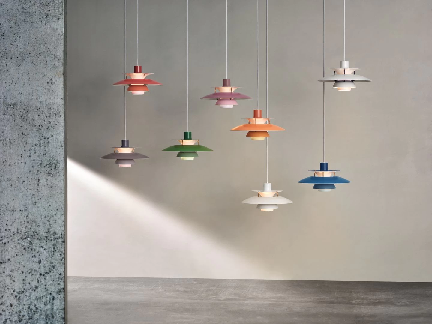PH 5 Mini wordt gelanceerd met een nieuw innovatief kleurenschema in samenwerking met de kleurexpert Louise Sass, die speelde met de kleuren om de nieuwe opwindende tinten te bereiken. De kleur van de lamp is bovenaan het donkerst en wordt vervolgens zachter en lichter voor elke ring naar beneden.