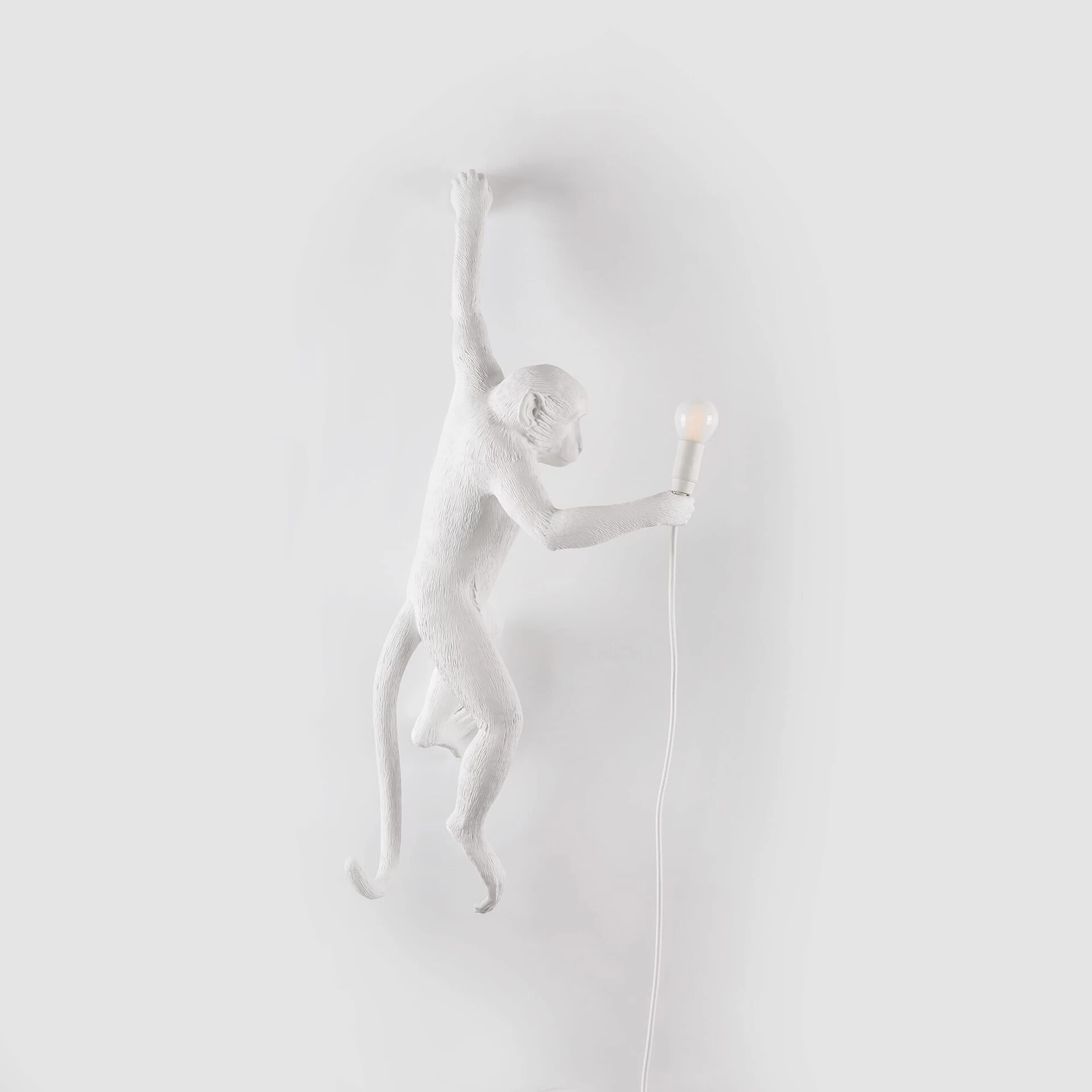Monkey Lamp van Seletti, ontworpen door Marcantonio Raimondi Malerba. De inspiratie komt van spelletjes uit de kindertijd, een ontmoeting tussen mens en natuur. Een andere lamp van een aap die een gloeilamp in verschillende posities vasthoudt. De decoratieve lichtbron is op alle modellen verstelbaar – hij kan in de palm van de hand op de aap worden geplaatst of hangend naar beneden. De lamp is een leuk decoratiedetail dat ieders aandacht trekt. Gemaakt van hars dat lijkt op porselein waardoor de lamp geschikt is voor elke kamer in huis.