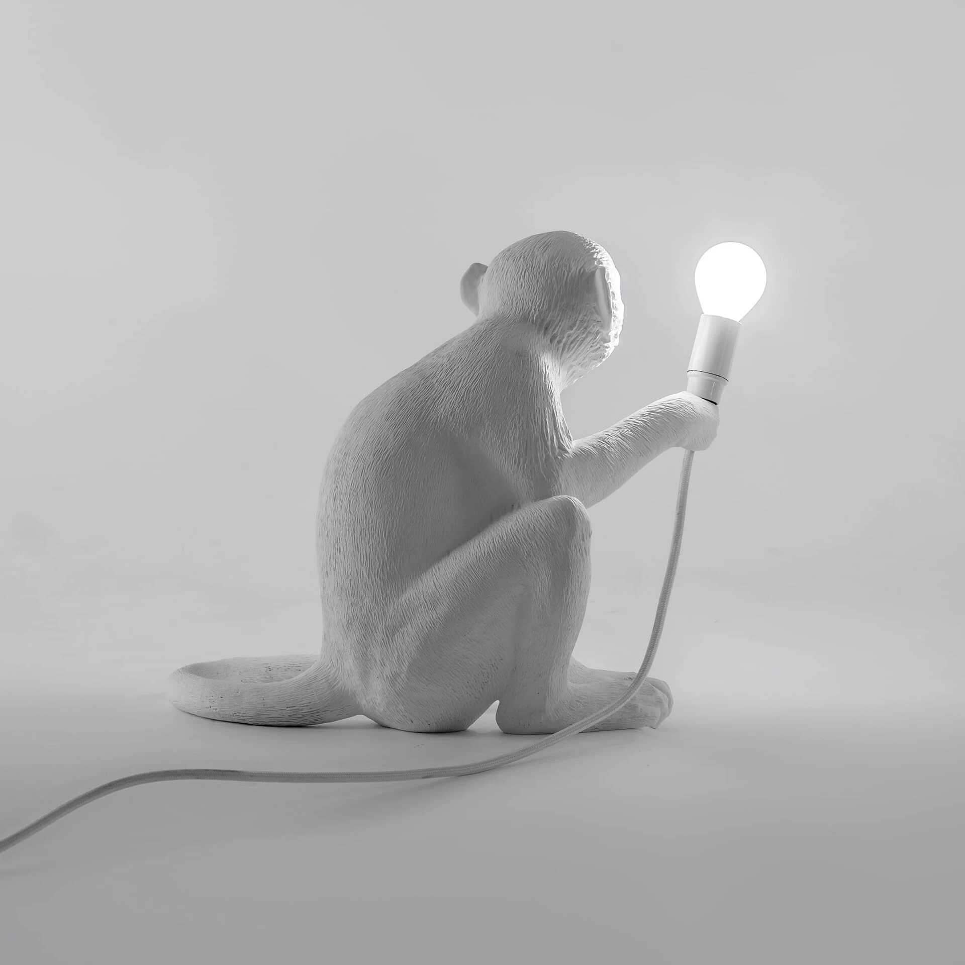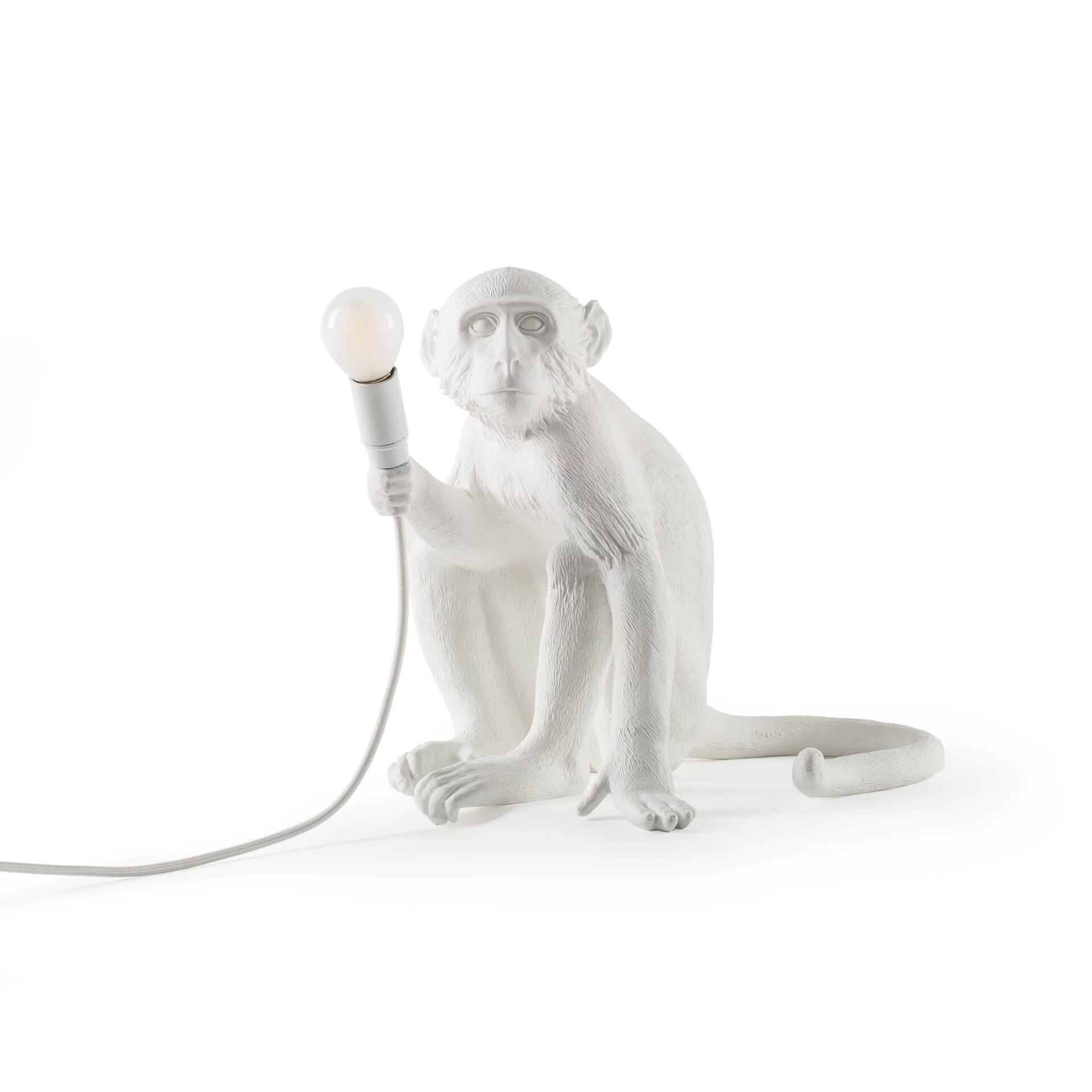 Monkey Lamp van Seletti, ontworpen door Marcantonio Raimondi Malerba. De inspiratie komt van spelletjes uit de kindertijd, een ontmoeting tussen mens en natuur. Een andere lamp van een aap die een gloeilamp in verschillende posities vasthoudt. De decoratieve lichtbron is op alle modellen verstelbaar – hij kan in de palm van de hand op de aap worden geplaatst of hangend naar beneden. De lamp is een leuk decoratiedetail dat ieders aandacht trekt. Gemaakt van hars dat lijkt op porselein waardoor de lamp geschikt is voor elke kamer in huis.