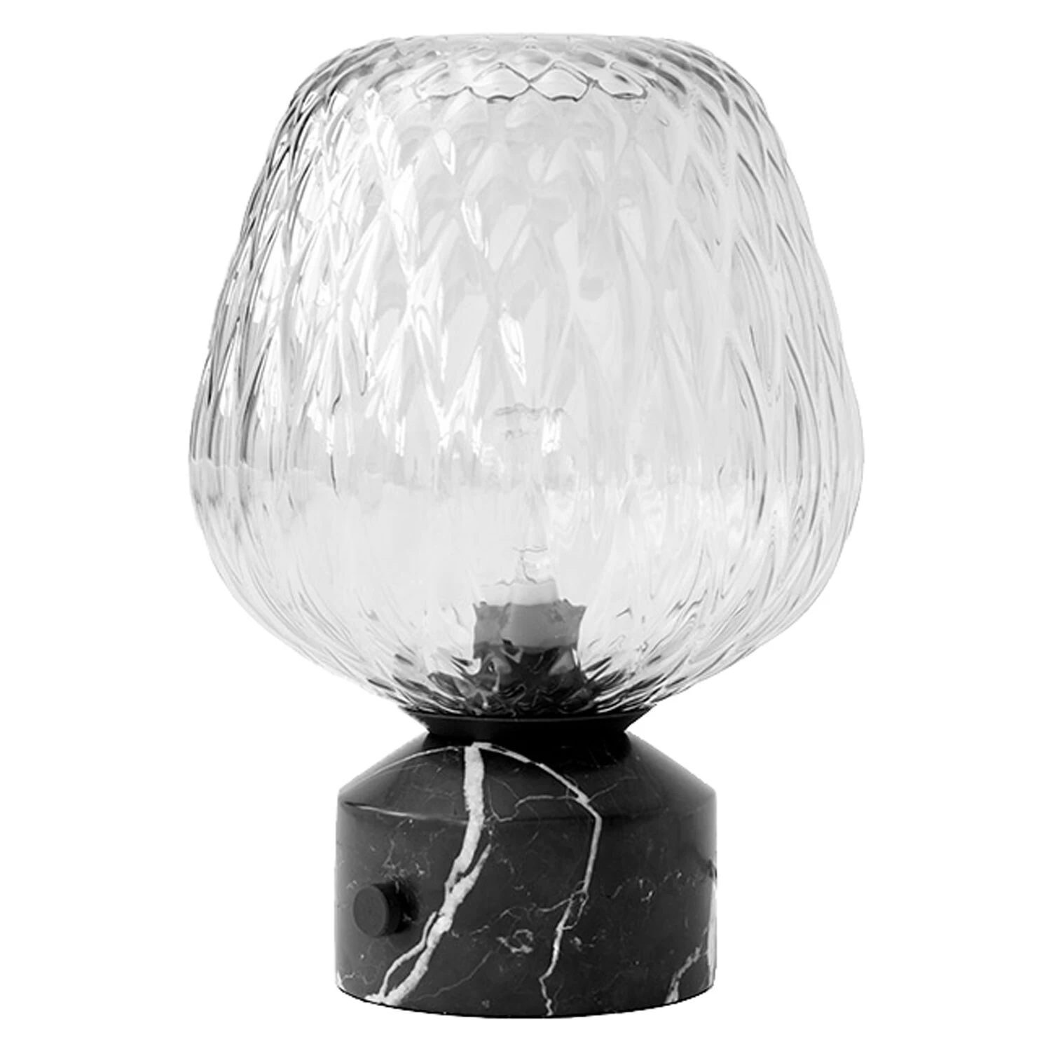 A lamp in which the designer has started from older luminaires and examined how the light is refracted and distributed from different directions. A perfect lamp to have in the hall or on a TV bench where a light source is needed. The lamp has a beautiful mouth-blown glass with a quilted structure and a marble base.