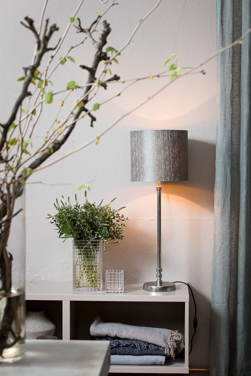 Erica lampshade from Watt & Veke. Lamp shade in cream-colored cotton / polyester. Made of interwoven strands in gold or silver to get their elegant shine. The shade can be used on both regular lamp and floor feet, if you turn it upside down you can also use it as a pendant. Erica is available in two versions, both have a fancy gold inside. Fits together with lamp socket E27.